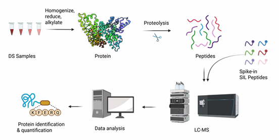 ELISA HCP檢測方法雖能評估總體HCP水平,但無法識別具體種類的脂肪酶,難以對工藝相關風險進行精準評估。為解決這一問題,Cygnus Technologies開發(fā)了基于液相色譜-串聯(lián)質(zhì)譜(LC-MS/MS)的靶向蛋白質(zhì)組學分析方法(CHO 6xLipase? MS Assay)。該方法采用平行反應監(jiān)測(PRM)技術和穩(wěn)定同位素標記肽段(SIL),實現(xiàn)對可以引起吐溫降解的六種CHO來源HCP脂肪酶的絕對定量: